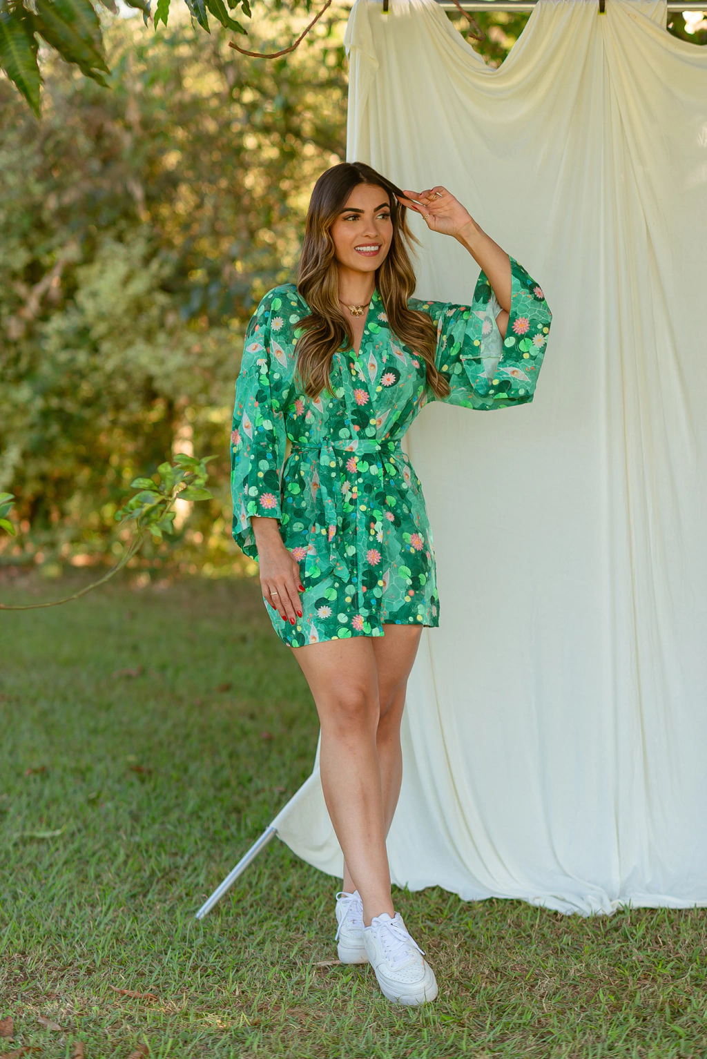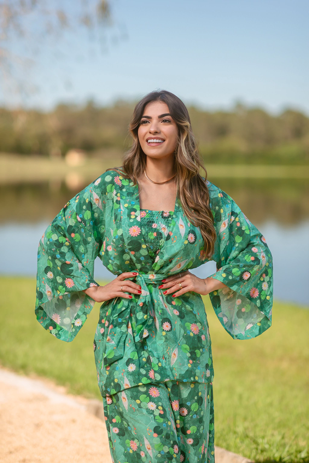 Aquele Kimono PERFEITOOO! Kimono de tecido viscose em estampa exclusiva acompanha faixa para amarrar da cintura!